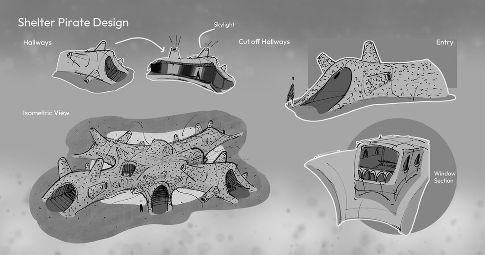 Concept Design pirate refuge, camouflaged in a coral reef, so they can resist attacks from other pirates and the fearsome leviathan that stalks the surrounding islets.